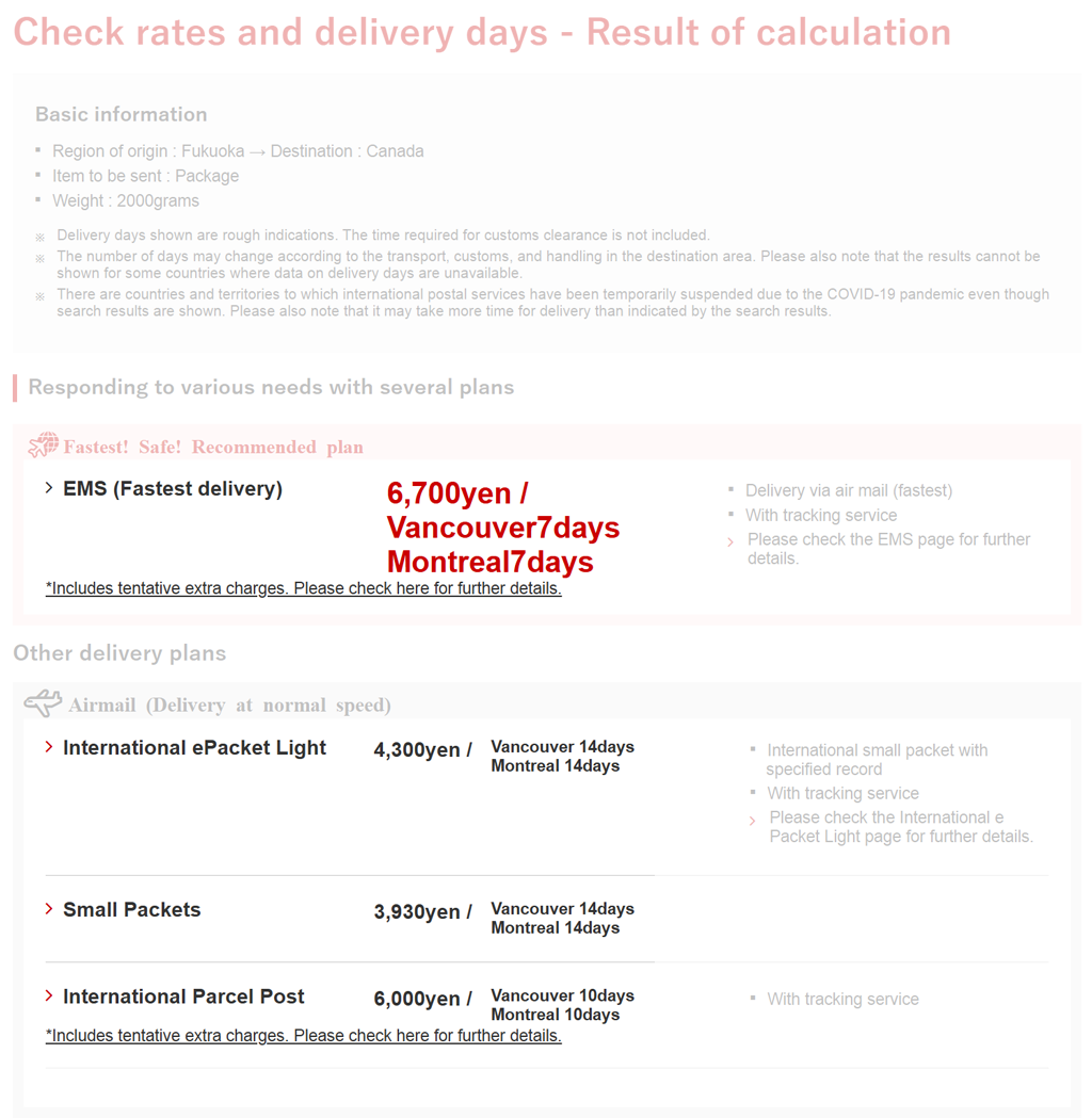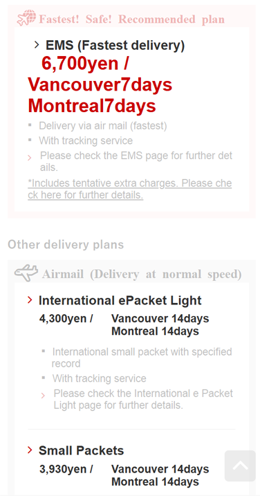 JP Post offers three main shipping methods. Click each button below to check the information of each method, with their advantages and disadvantages.